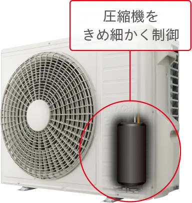 節電効果が期待できる環境(住宅断熱性能、外気温度、お部屋の状況など)と判断したらエアコンの運転を低出力に自動切替。運転・停止の頻度を抑えることで室内温度と湿度を安定させ快適に。