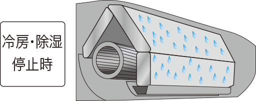 冷房・除湿運転後に、自動で約2時間の送風運転を行い、室内機内部の水分を乾燥させます。