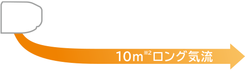 ※2 日立試験室(製造元)で測定。設定風速急速パワフルで暖房運転。ピーク風速0.2m/s以上となる距離10m。設置環境や使用状況により到達距離は異なります。