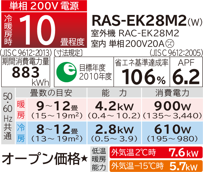 〇 このページは、RAS-EK40M2の特長を紹介しています。