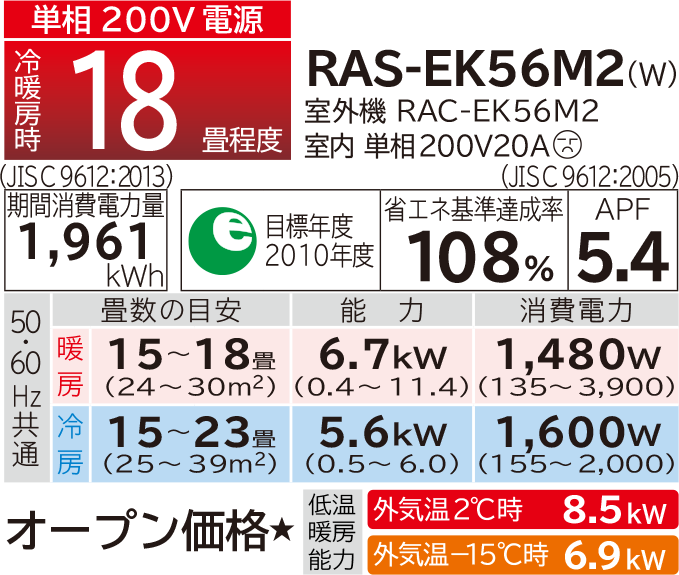 低温暖房能力とは、外気温の低い時(外気温2℃時:JIS低温条件時)の暖房能力です。暖房能力を重視する時には、これも目安にお選びください。