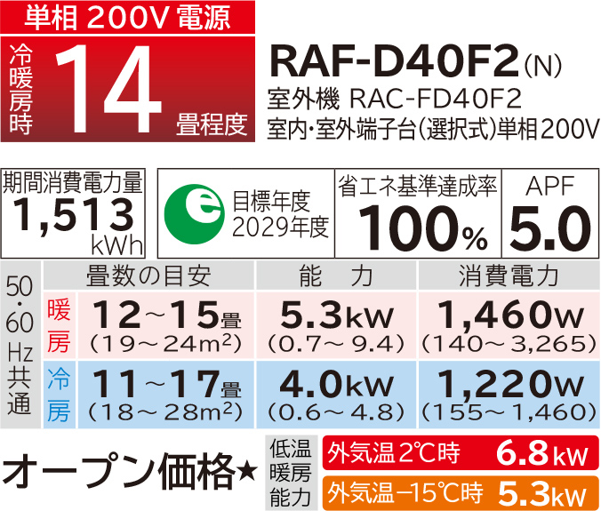 ※2 当社試験室(製造元)で測定。RAF-D50F2。外気温2℃、設定温度20℃、室温安定時。