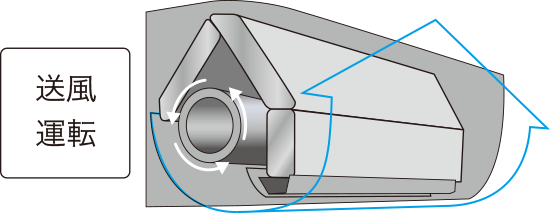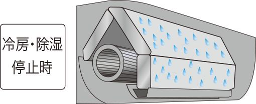 冷房・除湿運転後に、自動で約2時間の送風運転を行い、室内機内部の水分を乾燥させます。