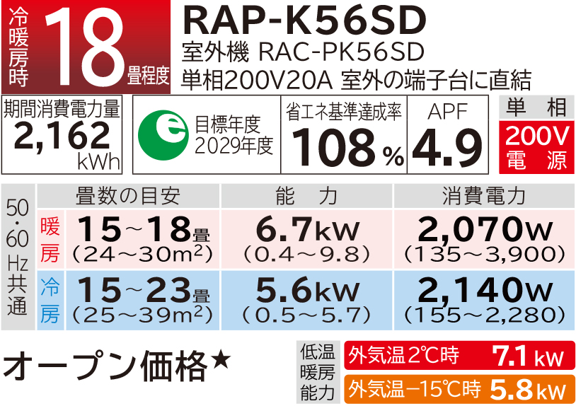 それぞれのお部屋の条件に合った商品をお選びいただくためには、冷・暖房負荷計算を行う必要があります。販売店にご相談ください。