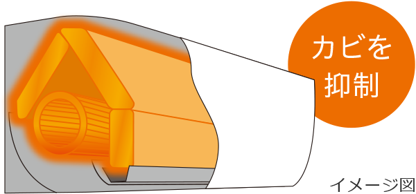 セットしておくと冷房・除湿運転が停止した後に、熱交換器の熱を利用してファンも加熱し、カビを抑制※9します。