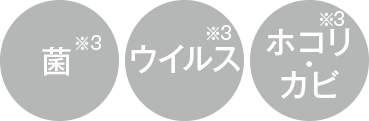 ※3 設置環境、使用状況により効果は異なります。試験機関:(一財)北里環境科学センター。試験番号:北生発2020_0650号。ウイルス試験は1種類のウイルスのみで実施。