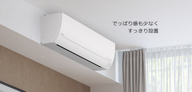 お部屋に溶けこむ薄型モデル。寝室や子ども部屋など、エアコンをすっきり設置したい小部屋にもおすすめです。
