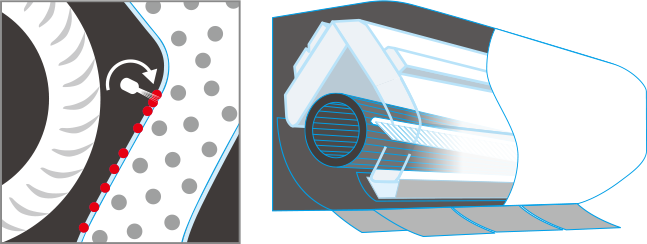 お部屋へ風を送り出すファンは、扇風機と違い、熱交換器の奥にあるため、通常のエアコンではお手入れができません。そこでファンの羽根の先端に付いた汚れを、自動で定期的にブラッシングする[ファンお掃除ロボ]を搭載。ファンにホコリがたまるのを防ぎ、吹き出す空気を清潔に。
