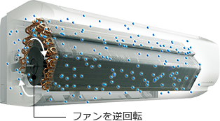 カビとカビの養分となるホコリも、熱交換器とファンの自動お掃除で洗い流します。