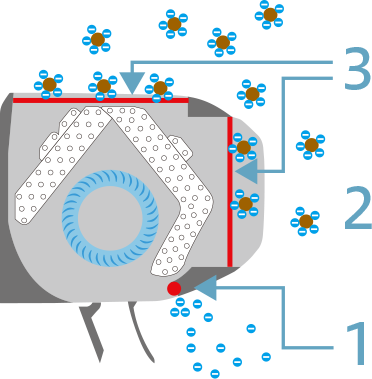 プラズマ電極から放出された電子がホコリなどを帯電させ、ステンレスフィルターで捕集します。