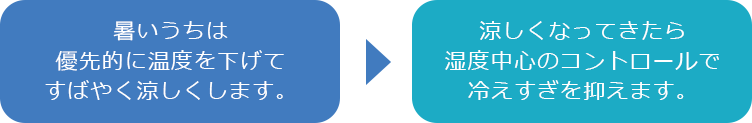 室温と湿度を自動でコントロールして、冷やしすぎず、さわやかな涼しさをお届けします。
