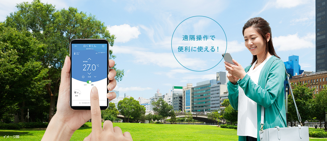 ●アプリ対応機種はAndroid™ 8.0以上のスマートフォン、iOS10.0以上のiPhone。 ●サービスのご利用に当たっては、専用アプリのダウンロード(AndroidスマートフォンはGoogle Play、iPhoneはAppStore)が必要です(アプリは無料です。) ●専用アプリのダウンロードならびにサービス利用にあたっては別途通信費がかかります。 ●通信状況が悪い場合には、ご利用できません。●「白くまくんアプリ」「白くまくん 音声操作」のサービス内容・スマートフォンの画面デザインおよび仕様は予告なく変更することがあります。 ●インターネット回線はブロードバンド回線(常時接続)が必要です。 ●AndroidはGoogle LLC の商標または登録商標です。iPhoneはApple Inc.の商標です。 ●乳幼児・お子様・お年寄り・病気の方・体の不自由な方など、ご自身でエアコンの操作ができない方が在室している場合は、管理できる人が近くにいるときに本操作をご使用ください。