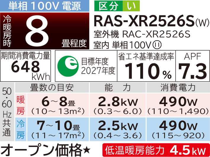 ※3 室温が上がる場合があります。条件によっては56℃にならない場合があります。RAS-XR2226S・XR2526S・XR2826S・XR3626Sは50℃。