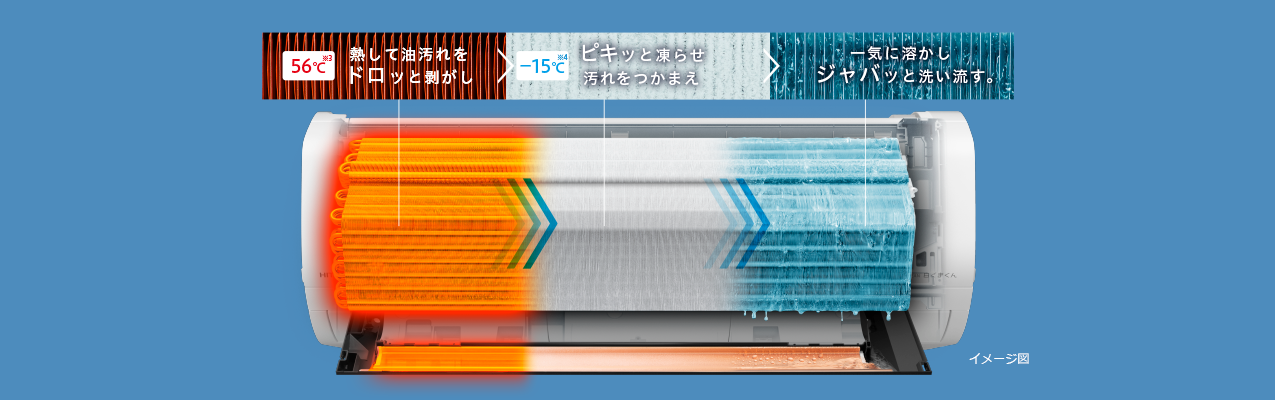 ※5 2025年10月1日時点で販売されている国内家庭用エアコンにおいて。熱交換器を自動で凍結させ洗浄する技術。