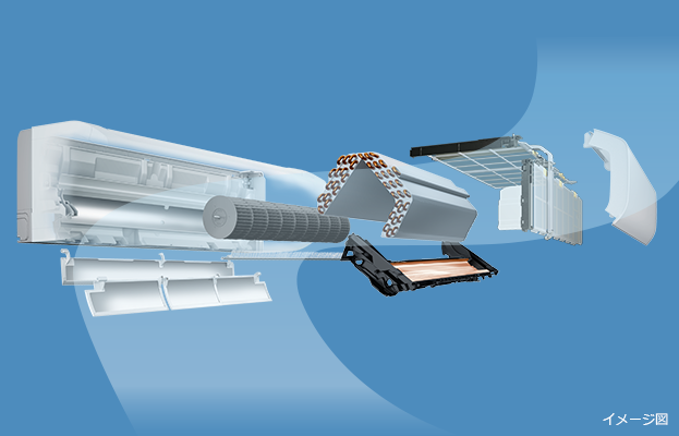 室内熱交換器は親水性コーティングにより、冷房・除湿時に発生した水がフィン表面になじんで流れやすくなり、汚れを付きにくくしています。