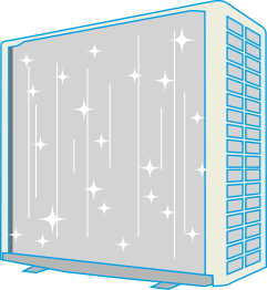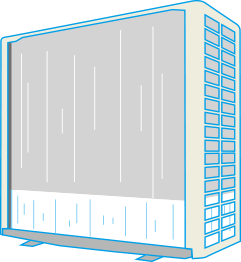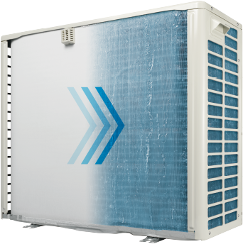室外機の熱交換器も[凍結洗浄]で清潔な状態にし、ホコリの目詰まりによる性能の低下を抑えます。
