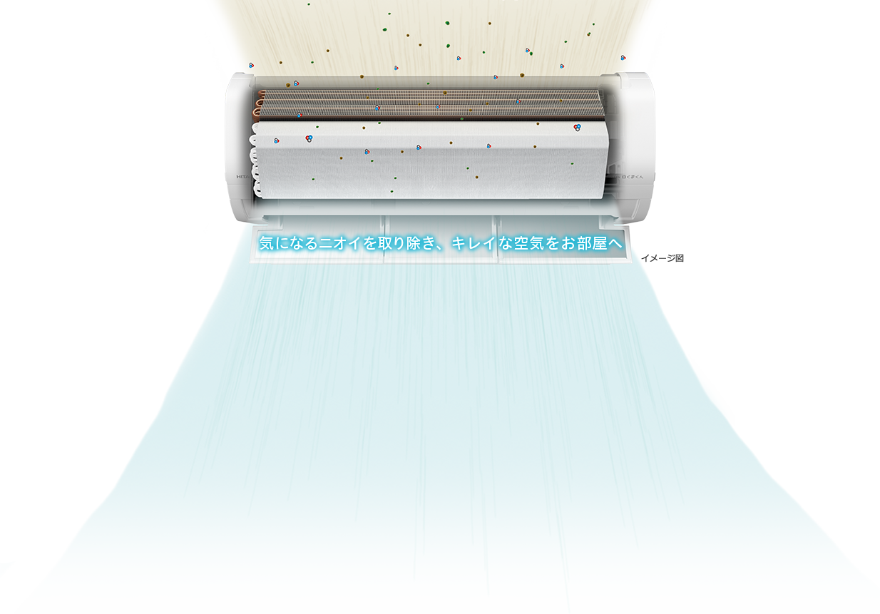 ※ニオイ・有害物質等をすべて除去できるわけではありません。設置環境、使用状況により効果は異なります。常時発生し続ける成分(建材臭・ペット臭等)はすべて除去できるわけではありません。