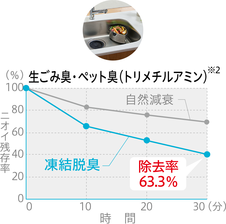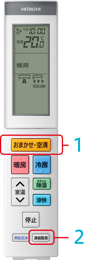 運転停止時、ニオイが気になる時にワンボタンで凍結脱臭運転開始。