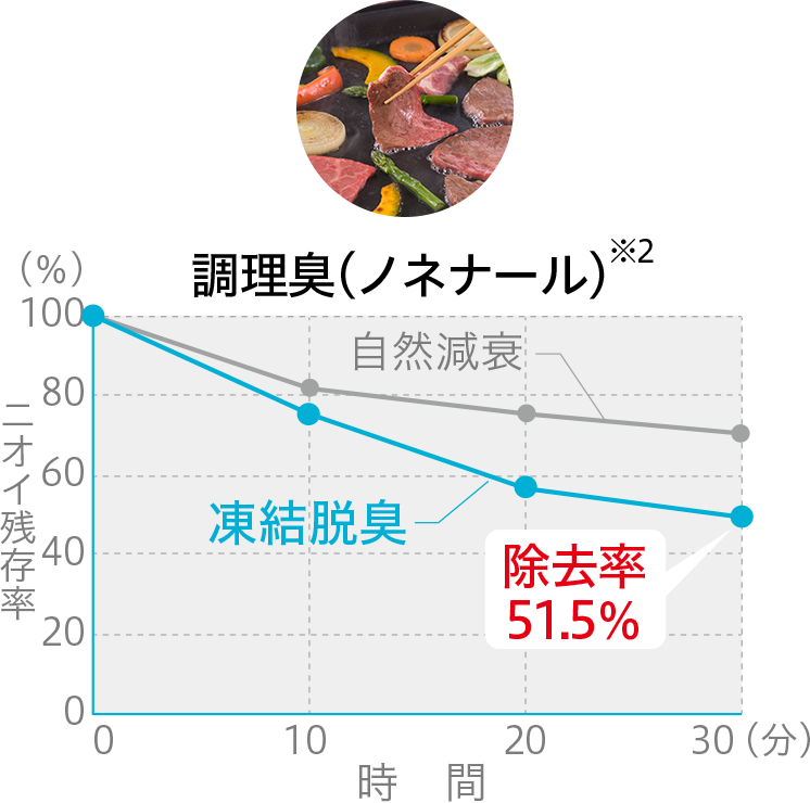 熱交換器を急速に冷やすことでできた霜がフィルターとなりニオイ成分や有害物質を吸着。