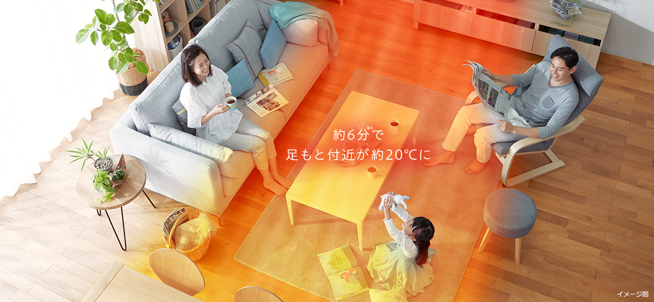大きなフラップにより温風を足もとに届け、広いリビングでもお部屋の奥までしっかり暖めます。