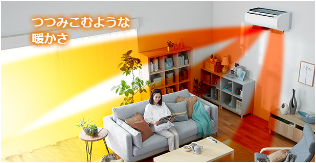大きな上下フラップと左右ルーバーにより、広いLDKなど、遠いところにも暖かさが届きます。