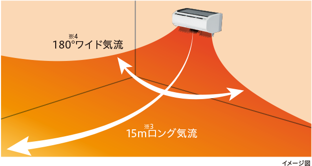 ※4 暖房設定時において手動設定時における最大送風可能範囲。