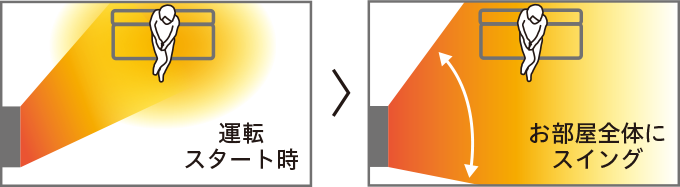 [AI気流(お部屋モード)]と組み合わせて暖房運転をスタートすると、人のいる方向に温風を吹き出し、足もとを中心にすばやく暖めます。
