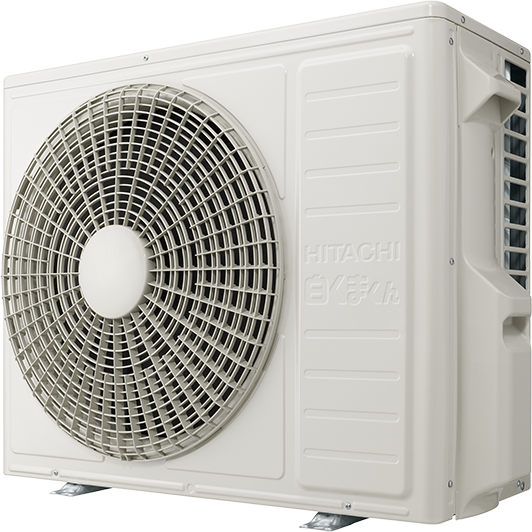 ※3 日立調べ(製造元)。日立試験室(製造元)での実証結果による一例。RAS-X40N2。JIS C9612:2013に基づくAPFから算出された期間消費電力量は、新品を100とした場合の比率を記載。室内機のホコリは、1年分のホコリ量2g(日立調べ(製造元))から得られる7年相当分のホコリ量。室外機のホコリは、7年間使用した室外機のホコリ量。日立独自の条件(製造元)に基づくものです。使用状態や環境により異なります。