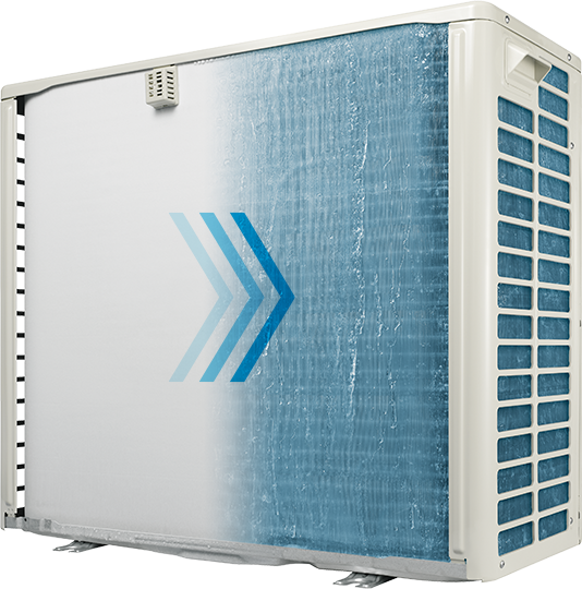 親水性コーティングにより、霜を溶かした水がフィン表面になじんで流れやすくなり、汚れをつきにくくします。