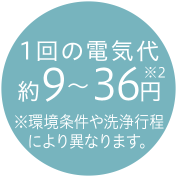 ※2 日立試験室(製造元)で測定。RAS-X40R2。室温27℃、湿度49%、外気温35℃で凍結洗浄(ヒートプラス設定なし)を1回行った場合の消費電力量261Wh、室温28℃、湿度65%、外気温25℃で凍結洗浄(ヒートプラス設定あり)を1回行った場合の消費電力量1,167Whから、電力料金目安単価31円/kWh(税込)[2022年7月改正]で算出した時の電気代。