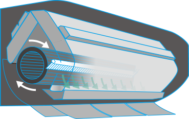ファンの羽根の先端についたお手入れ困難な汚れを自動で定期的にブラッシングする[ファンお掃除ロボ]を搭載。さらにファンを加熱することで、油分を含んだホコリまでしっかり除去します。