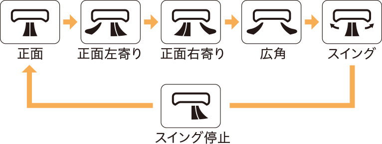 リモコンの左右風向ボタンを押すごとに風向が切り替わります。