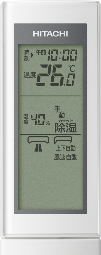 ※日立独自の条件(製造元)により評価。日立試験室(製造元)で測定。RAS-X40R2。洋室14畳。室内外温度24℃・湿度80%で[手動カラッと除湿]。設定温度24℃。設定風速急速パワフル。使用する条件により湿度が変わることがあります。