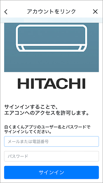 本機能は「白くまくんアプリ」で作成したアカウントを使います。アカウントの作成およびエアコンの登録がお済みでない場合は、先に「白くまくんアプリ」をインストールし、設定してください。