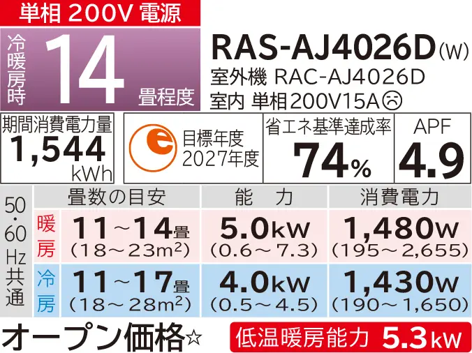 〇 このページは、RAS-AJ4026Dの特長を紹介しています。