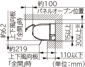 *室内機背面で配管接続する場合は、上面隙間120mm以上必要です。