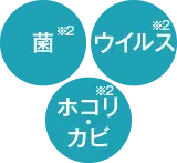 ※2 設置環境、使用状況により効果は異なります。試験機関:(一財)北里環境科学センター。ウイルス試験は1種類のウイルスのみで実施。