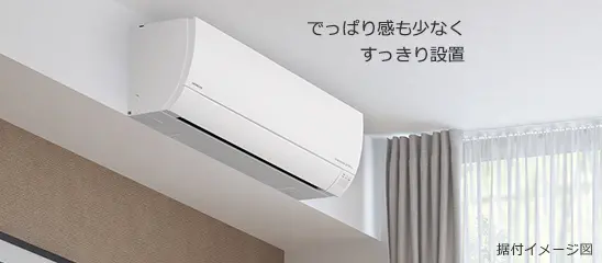 お部屋に溶けこむ薄型モデル。寝室や子ども部屋など、エアコンをすっきり設置したい小部屋にもおすすめです。