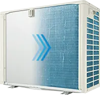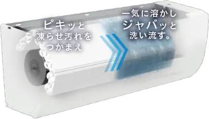 室外熱交換器に付着した小さなホコリを凍らせ、たくわえた霜を一気に溶かし洗い流します。ホコリの目詰まりによる性能の低下も抑えます。