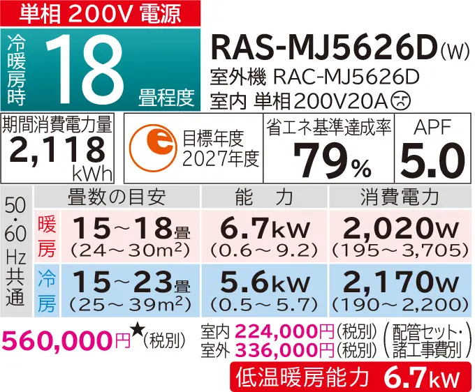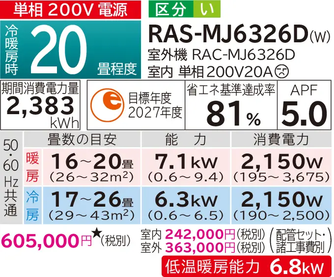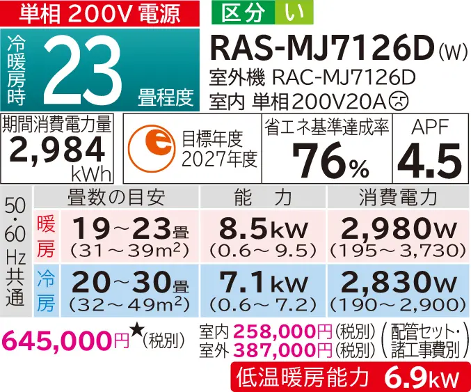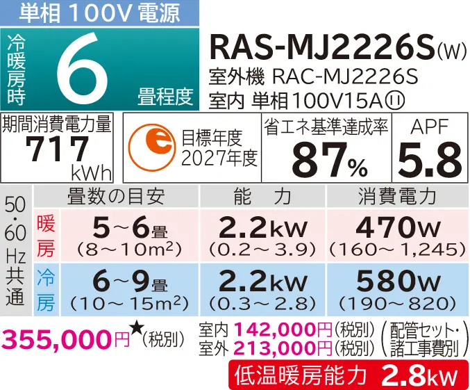 | 型式 | RAS-MJ2226S・MJ2526S・MJ2826S・MJ3626S・MJ4026D・MJ5626D | RAS-MJ6326D・MJ7126D | |
