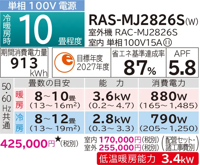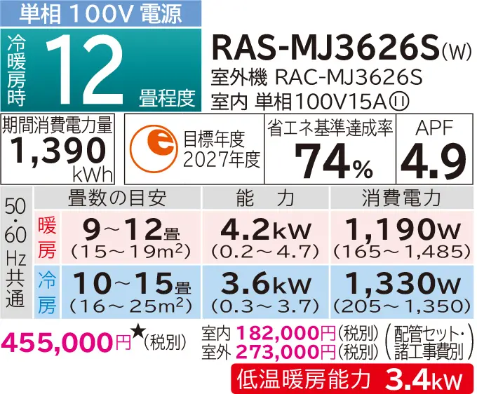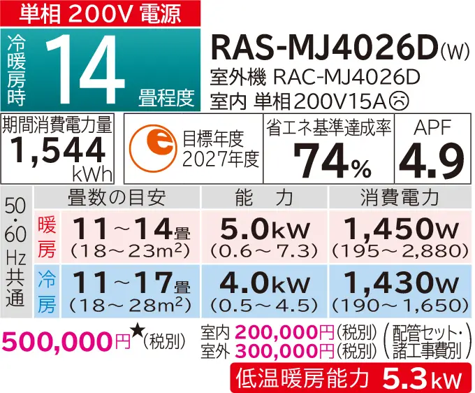 ※RAS-MJ4026Dにおいて、当社独自の条件(製造元)により評価しています。