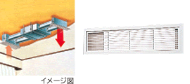 吸込み口と吹き出し口のレイアウト方式を選べるフリーダクト。和室の天袋や地袋、天井や下がり天井などにもフレキシブルに対応し、お部屋の雰囲気を損なわずに設置できます。