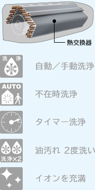 熱交換器の汚れやカビ等をすべて洗い流せるものではありません。
