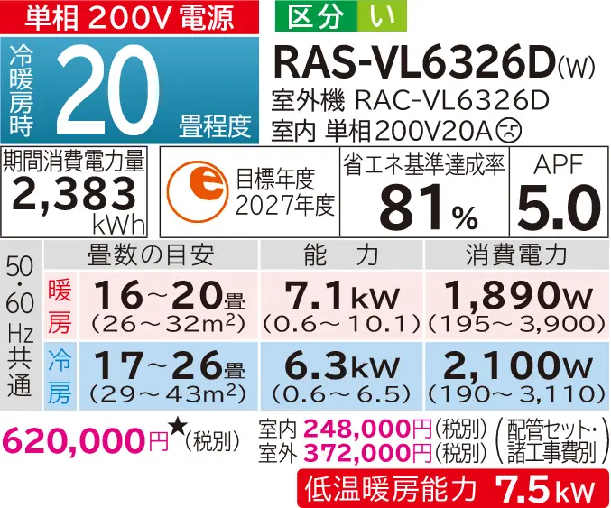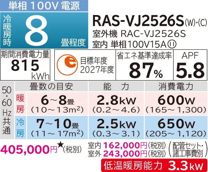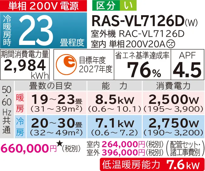 | 型式 | RAS-VJ2226S・VJ2526S・VJ2826S・VJ3626S・VJ4026D・VJ5626D | RAS-VL6326D・VL7126D | |
