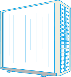 汚れによる風量低下を室外機で約13%低減し、能力の低下を抑えます。