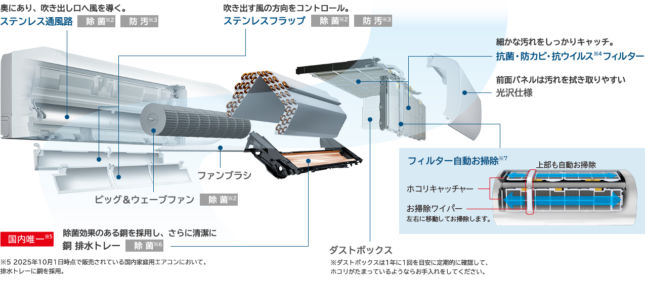 素材にも清潔性の高いステンレスを採用し、エアコン内部の菌※2や汚れ※3を抑制します。