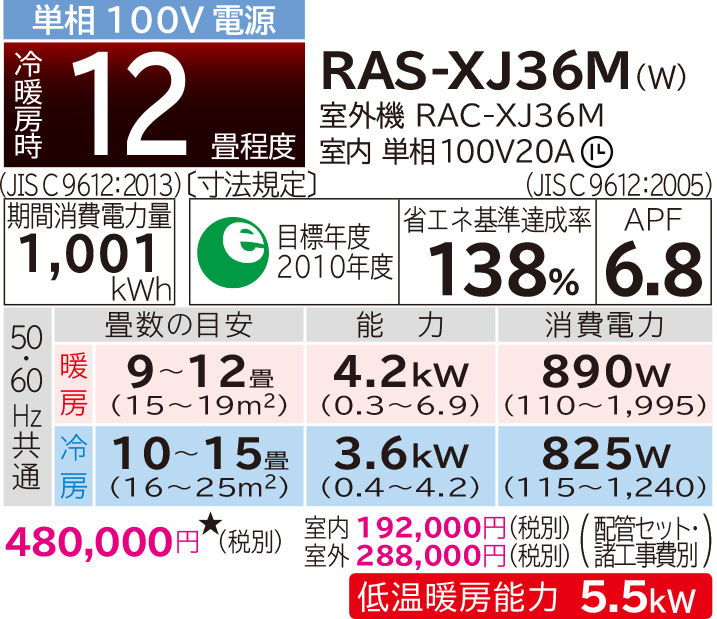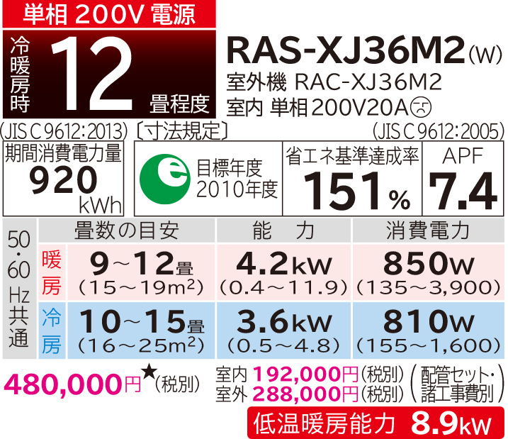 | 型式 | RAS-XJ22M・XJ25M・XJ28M・XJ36M・XJ36M2・XJ40M2・XJ56M2 | RAS-XJ63M2・XJ71M2・XJ80M2・XJ90M2 | |