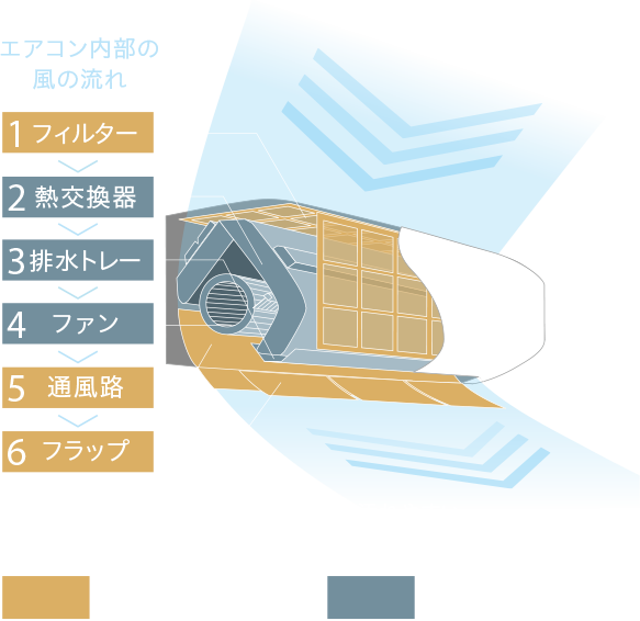 ※通風路・フラップともに、約3年間使用したエアコンの一例。使用状態や環境により異なります。