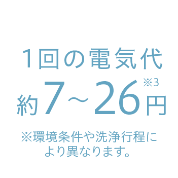 ※3 日立試験室(製造元)で測定。RAS-XJ40M2。室温27℃、湿度49%、外気温35℃で凍結洗浄(ヒートプラス設定なし)を1回行った場合の消費電力量259Wh、室温28℃、湿度65%、外気温25℃で凍結洗浄(ヒートプラス設定あり)を1回行った場合の消費電力量934Whから、電力料金目安単価27円/kWh(税込)[平成26年4月改正]で算出した時の電気代。