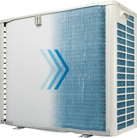 室外機の熱交換器も[凍結洗浄]で清潔な状態にし、ホコリの目詰まりによる性能の低下を抑えます。